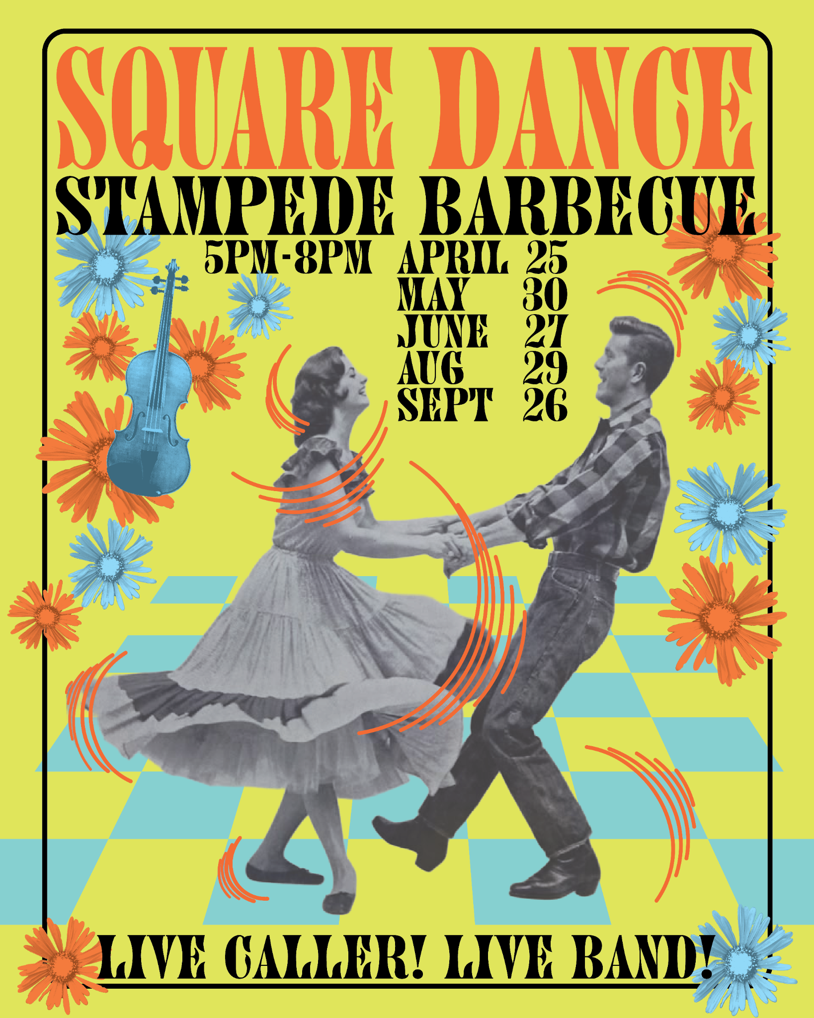 Square Dance - April 25 Saturday, April 25, 2026 5:00 PM 8:00 PM Stampede Barbecue 4372 Morgantown Road Mohnton, PA, 19540 United States (map) Google Calendar ICS Square Dance - April 25 Join us for a lively Square Dance at Stampede Barbecue from 5:00 to 8:00 PM with a live caller and live band. Grab some BBQ, hit the dance floor, and enjoy a fun, easygoing night. All are welcome.